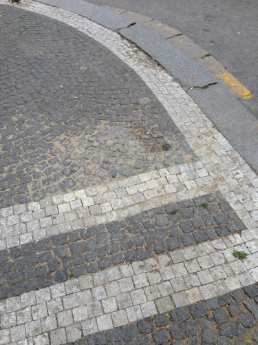 Díra v chodníku na rohu Sudoměřské a Přemyslovské. Zase.