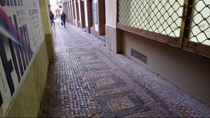 Rozbitý chodník se nachází mezi prodejnou T- Mobile a kostelem Svatého Martina ve zdi. V těch místech je dvojitý podchod. Rozbitý chodník je na kraji podchodu spojeného s obchodem s koženými doplňky a oblečením a nikoli s podchodem patřící prodejně T-Mobile.