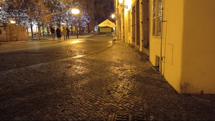 Díra a rozházené kostky okolo v Mikulášské ul.