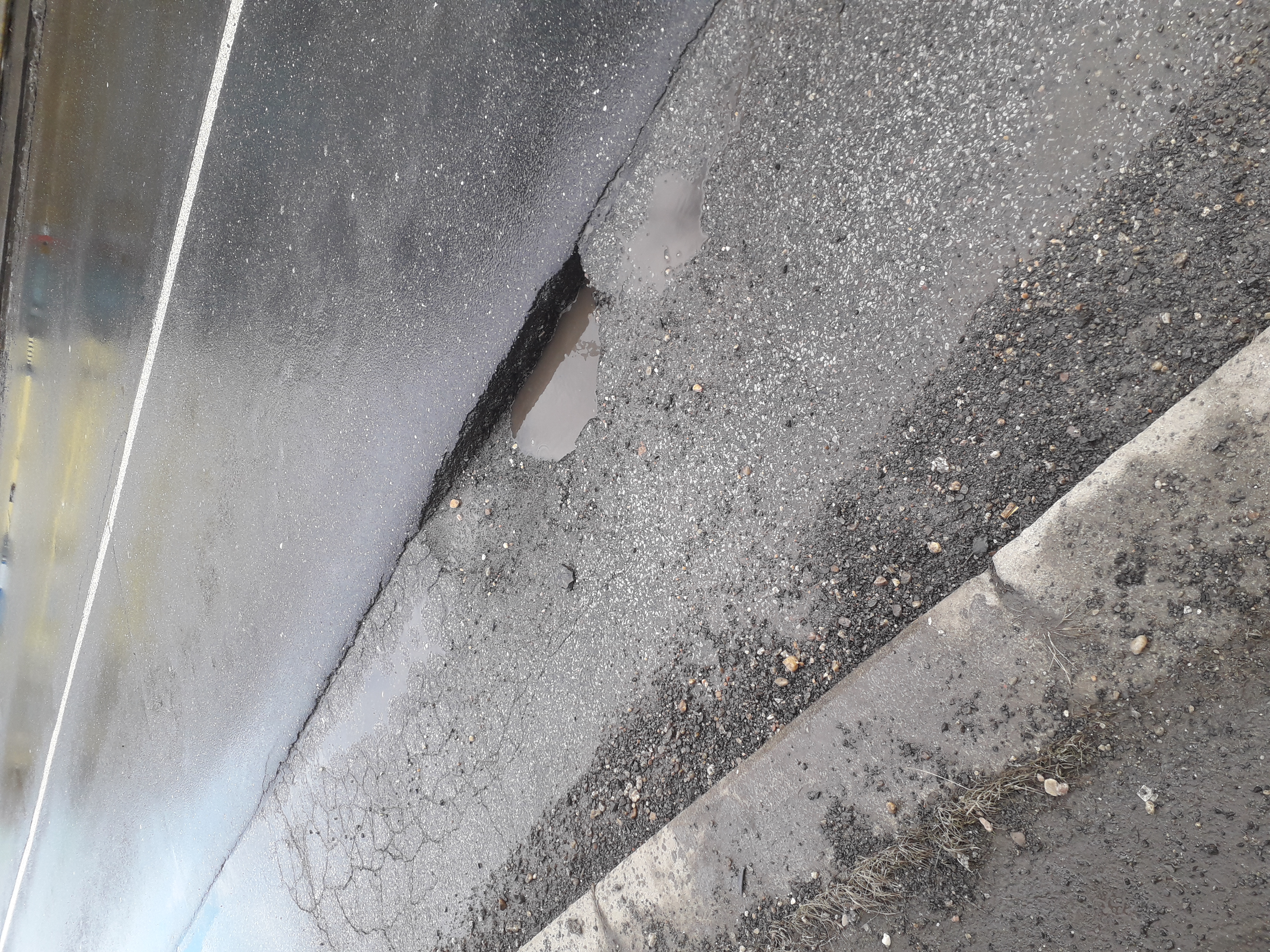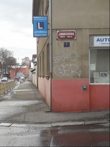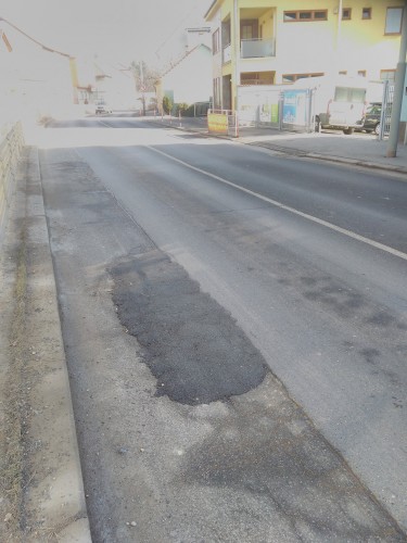 velká díra na silnici U tvrze číslo 18, kolmo na ní je v těch místech ulice Janderova 2. Díře se auta vyhýbají nebo do ní najedou. Vedle je úzký chodník se zábradlím, kam by při smyku nebo vjetí a následné kolizi mohly ohrozit chodce.