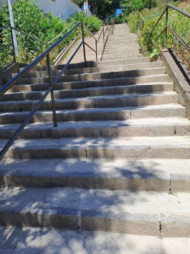 Včera jsem na schodech viděla pracovníka úklidu, který zametal kamínky po zimním ošetření schodů a dozvěděla jsem se, že schody uklízí již 15 let a jejich stav se jen stále zhoršuje.
