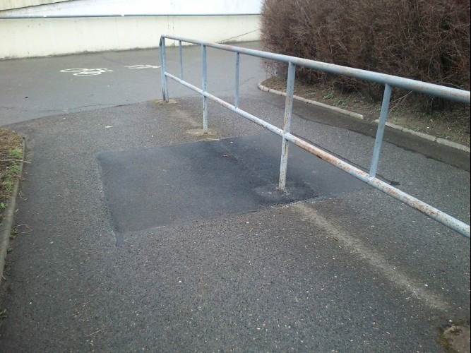 Na chodníku, který slouží jako bezbariérový vchod do podchodu pro vozíčkáře, kočárky a nově i cyklisty ( nová cyklostezka), je již řadu let vyříznutý otvor. Díra je uprostřed chodníku a zasahuje do obou směrů, z tohoto důvodu není možné se otvoru vyhnout. Tuto připomínku jsem již na jaře 2012 podal na Městskou část Prahy 4. Odpověď byla, že podnět předali na TSK.