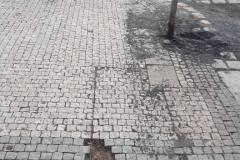 5) povrch vozovky, na kterou cestující MHD vystupují, je tvořen velkými dlažebními kostkami, které jsou kluzké, nerovné a mezi kostkami jsou velké mezery.