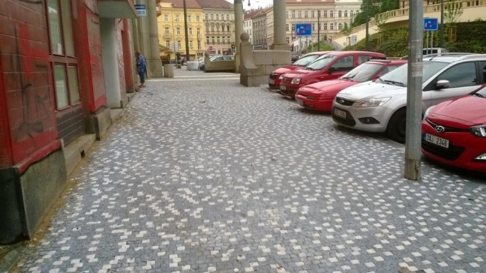 do rekonstrukce Moskevské je ještě daleko, prosíme o zajištění opravy, než se porucha zvětší na celou šířku chodníku.