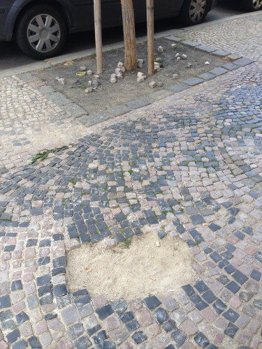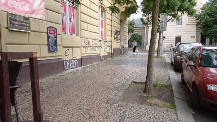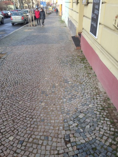 V ulici U vodárny je opět vytlučená dlažba. Dláždění je tu rozbité pravidelně a výzvy TSK, aby celý povrch chodníku místo flikování děr jednou kvalitně předláždila, zůstávají bez odezvy.